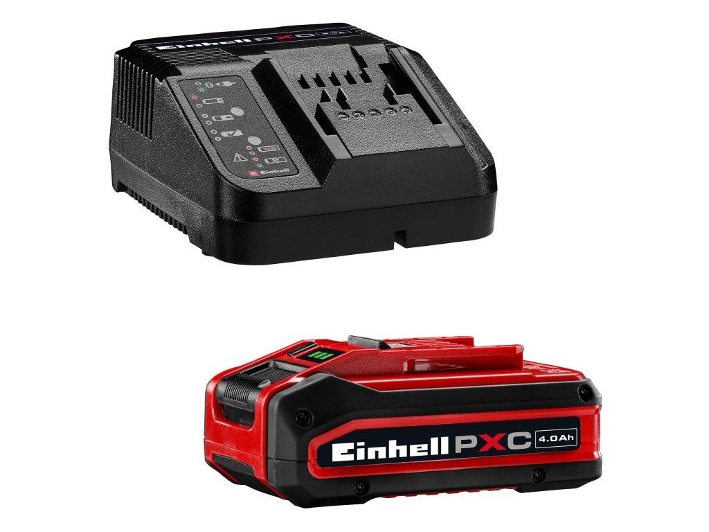 The Einhell 4 Ah PLUS Starter Kit is the perfect basis to start or expand the domestic Power X-Change range. The Starter Kit with an 18 V 4 Ah Power X-Change battery and the 3 A quick charging device is part of Einhell's multifunctional and infinitely combinable Power X-Change battery system. The universal Power X-Change batteries supply all cordless tools in the entire product family in the garden and workshop sector with power and endurance. The charging devices in the range can also be used universally for all Power X-Change batteries. The advantages for customers are clear: With one battery and one charging device for all devices, you not only save considerable costs on the purchase, but its universal nature protects the environment and offers flexibility in the home and garden. There will be no mess and chaos with a wide variety of batteries and charging devices for each individual device. The high-quality battery resists the memory effect and the self-discharge that usually occurs in batteries for constant, high power. The 18-volt 4 Ah Power X-Change is the ideal basic battery for the Power X-Change family, and is also suitable for Twin pack utilisation with 36 V applications. The process-controlled ABS active battery management system continuously monitors the battery parameters using its integrated microprocessor. This ensures maximum safety, optimal device performance, maximum runtime and maximum service life. You can check the current charge status via the 3-setting LED indicator. The design of the housing makes it resistant to dust, corrosion and mechanical influences. Due to the recessed grip, the battery can be easily removed from all devices. The fast charging device is compactly designed and therefore requires little space. Utilising the hanging loops means that the charging device can be easily assembled on the wall. Fast charging technology creates shorter charging times and the battery is constantly monitored by the smart charging management system for optimal charging and top safety. Refresh mode makes it possible to reactivate deeply discharged batteries. All current information is provided via the 6-stage LED status indicator.
