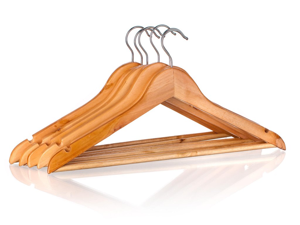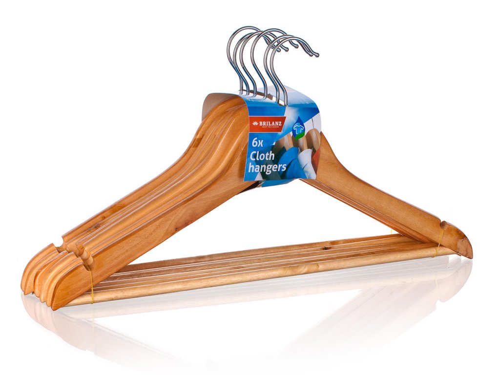Sada ramínek obsahuje 6 ks dřevěných šatních ramínek, s kovovými háčky, na věšení nejrůznějšího prádla.