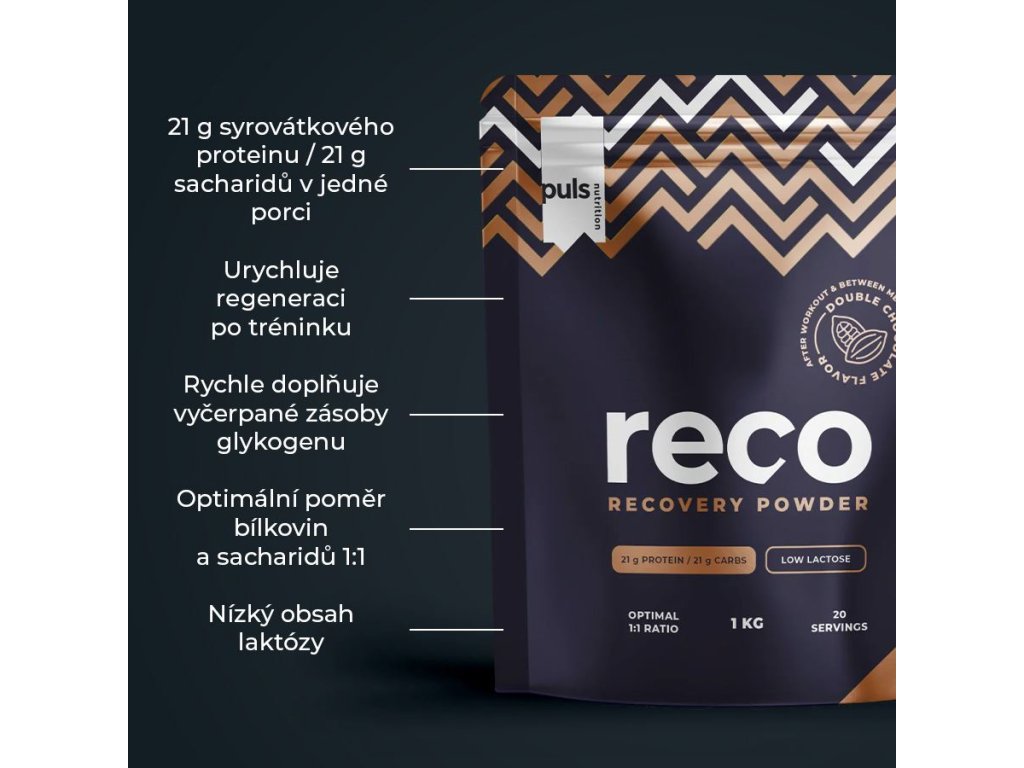 Podpořte regeneraci a maximalizujte výsledky. PULS RECO obsahuje optimální poměr bílkovin a sacharidů 1:1, který je cíleně navržen pro rychlé doplnění glykogenových zásob a okamžité nastartování svalové regenerace po tréninku. Základem je prémiový syrovátkový proteinový koncentrát, který je bez laktózy a poskytuje kompletní aminokyselinový profil pro efektivní obnovu svalové hmoty.