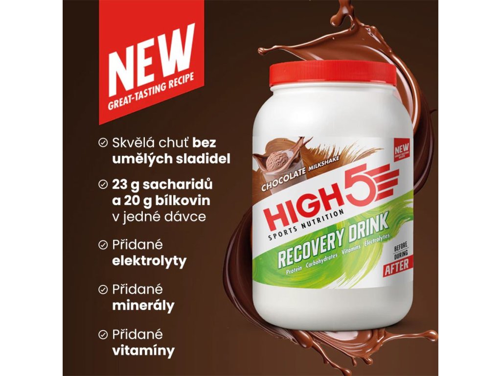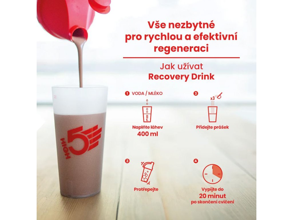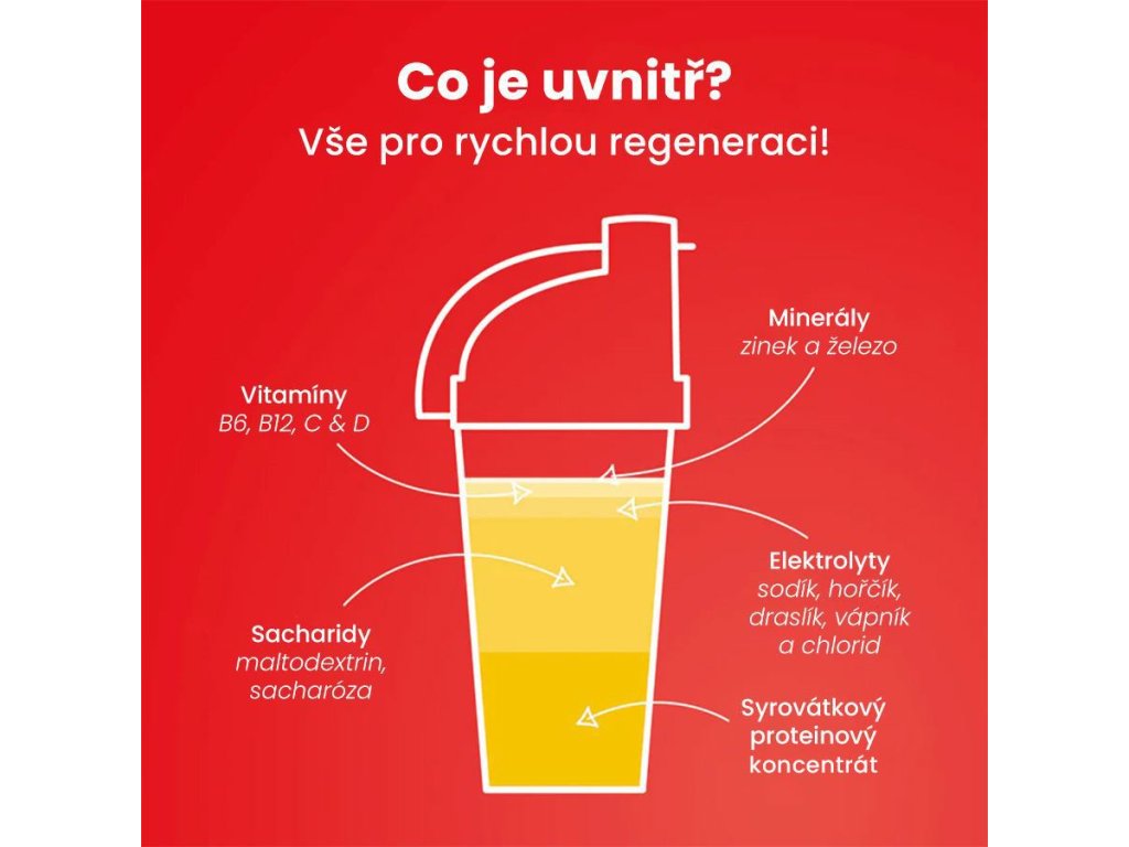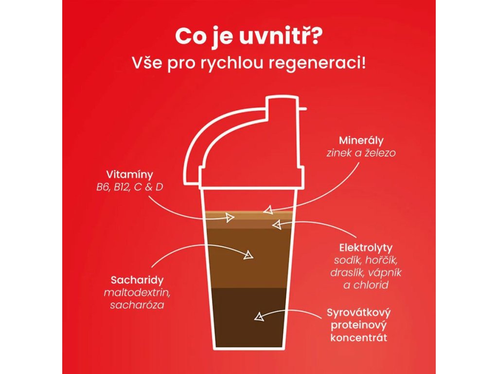 Recovery Drink je lahodný proteinový nápoj s vyváženou směsí proteinů, rychlých sacharidů a nově i klíčových elektrolytů, minerálů a vitamínů určený po podporu organismu po intenzivním vytrvalostním výkonu. Právě v tomto momentu přichází bolest a ztuhlost svalů, je vyčerpán svalový glykogen, což ústí v únavu a vyčerpání. Forma syrovátkového proteinu (koncentrát nejvyšší kvality) a sacharidů obsažená v Recovery Drinku je vybrána tak, aby zajistila co nejrychlejší regeneraci po výkonu.