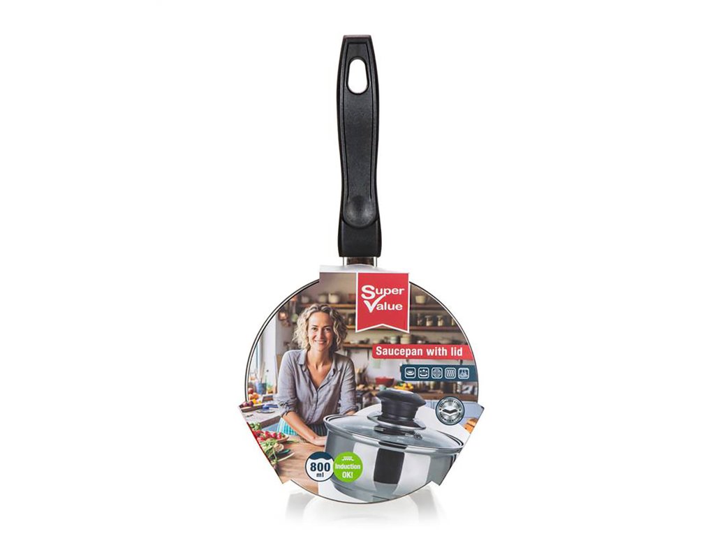 Rendlík 14 cm, se skleněnou poklicí, 0,8 l, nerez SUPER VALUE.