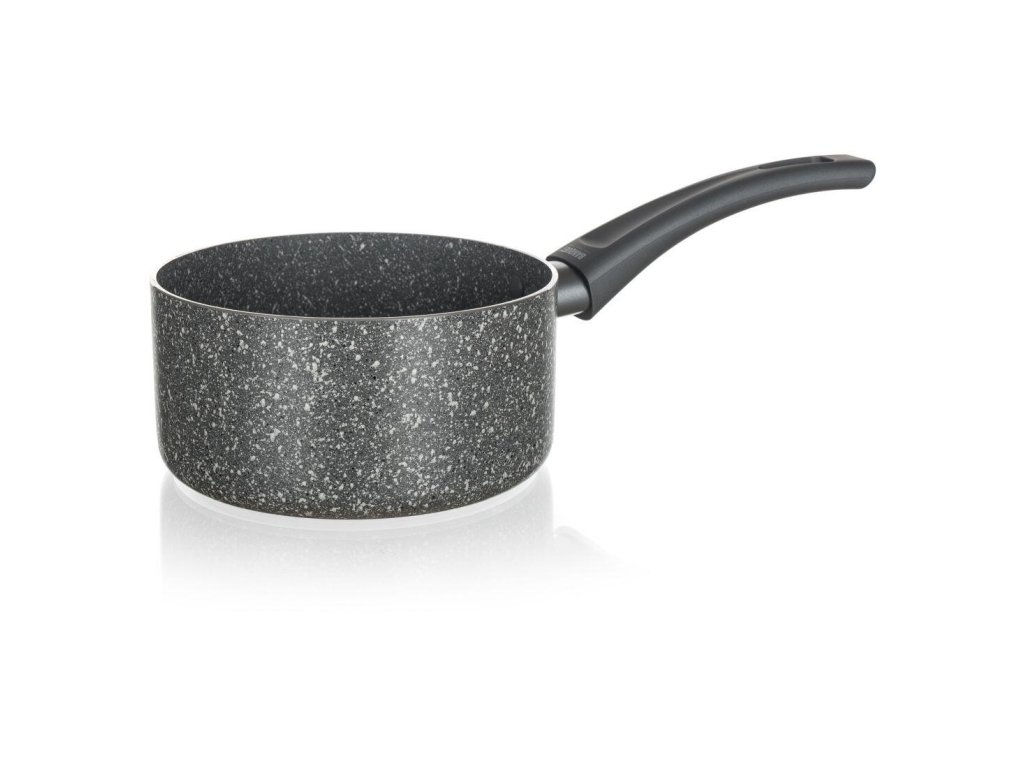 Hliníkový presovaný rendlík GRANITE, s nepřilnavým 2vrstvým povrchem, v granitovém dekoru, šedou bakelitovou rukojetí se soft - touch povrchovou úpravou, bez poklice, s plně indukčním dnem.