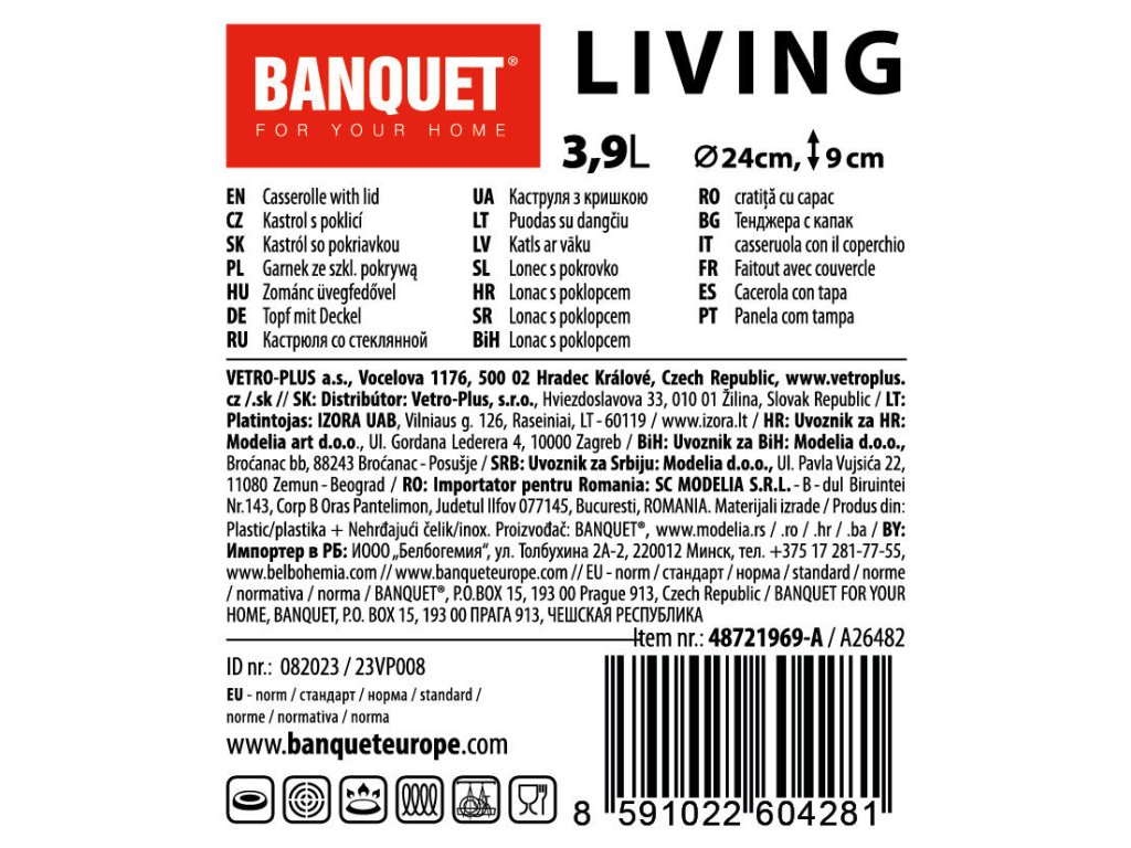 rendlík 24cm se skl.poklicí 3,9l nerez LIVING