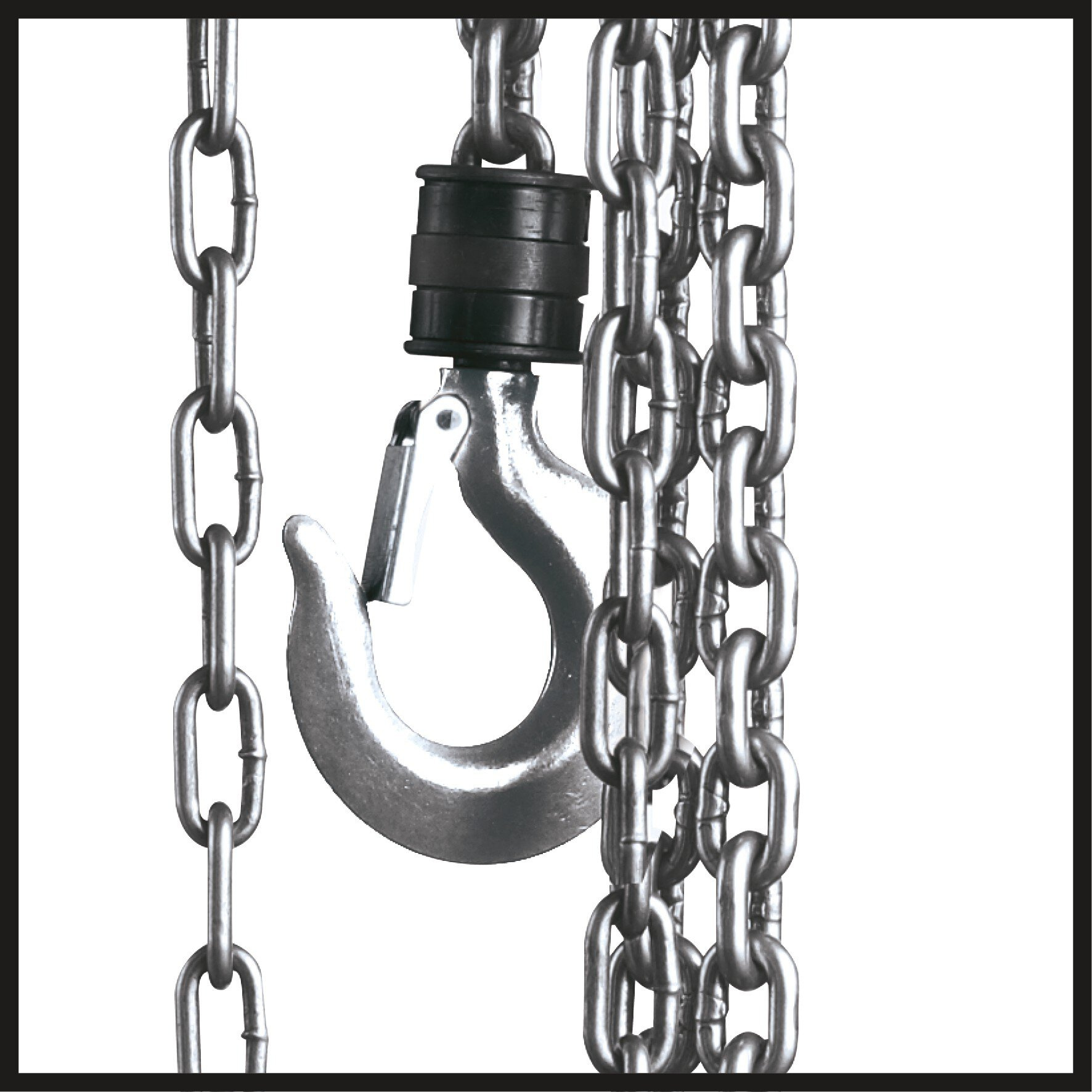 S řetězovým kladkostrojem Einhell TC-CH 1000 lze snadno zvedat a přepravovat těžká břemena. Ať už v dílně nebo v garáži je řetězový kladkostroj nepostradatelným pomocníkem, který navíc chrání zdraví a záda, když je třeba nadzvednout nebo zvednout těžké vybavení nebo komponenty. Bezpečnou přepravu břemen přitom zajišťuje závěsný hák s bezpečnostním úchytem. Řetězový kladkostroj Einhell TC-CH 1000 je vybaven bezpečnostním hákem pro montáž na vhodný nosný prvek. Dlouhý řetěz umožňuje snadnou obsluhu řetězového kladkostroje. Břemena o hmotnosti až 1 000 kilogramů lze tak zvedat až do výšky 2,50 metrů. Díky výhodné šířce 180 milimetrů a výšce 160 milimetrů lze optimálně využít i výšku místnosti v uzavřených prostorách. Robustní, uzavřené kovové pouzdro umožňuje bezpečné vedení řetězu.