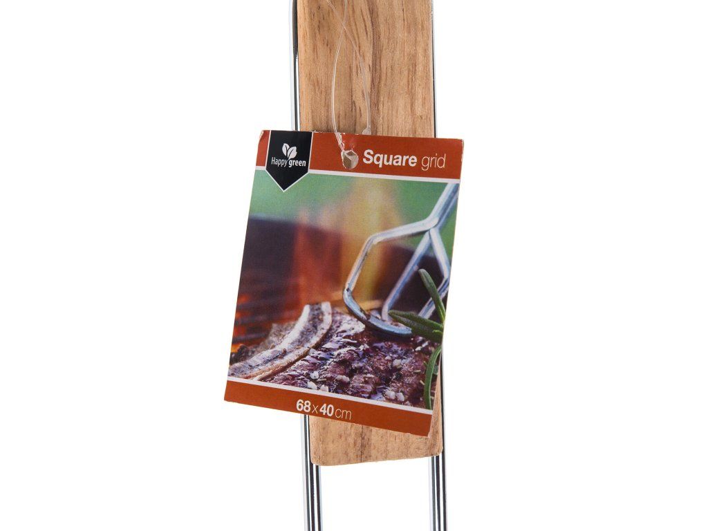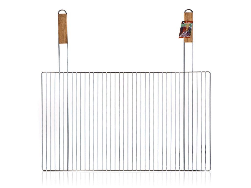 Hranatý grilovací rošt BBQ s dřevěnými rukojeťmi využijete pro snadné grilování masa, zeleniny apod.