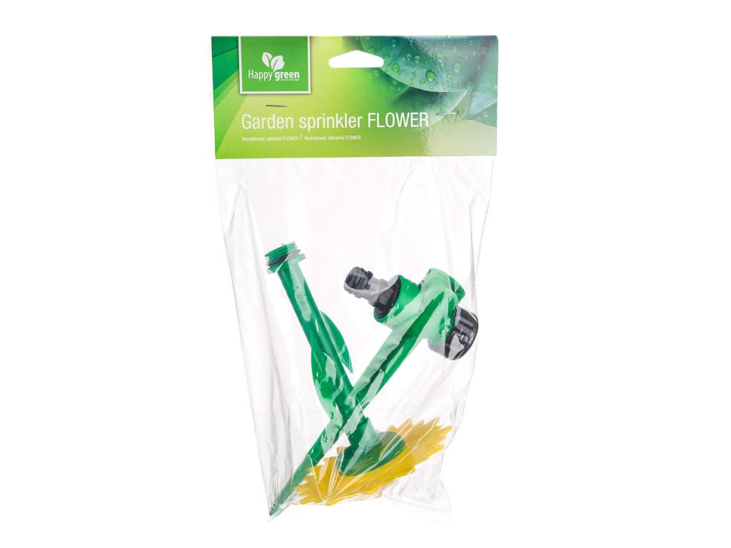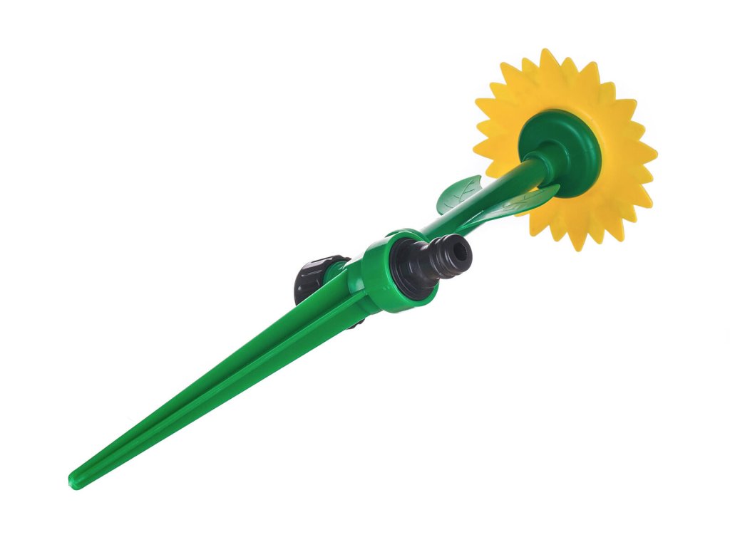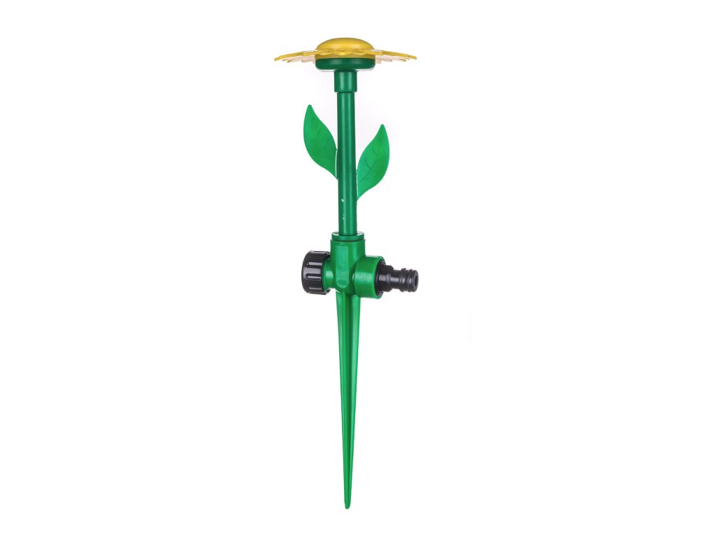 Stacionární rozstřikovač ve tvaru květiny, který zároveň slouží jako ozdoba vaší zahrady. Výška rostřikovače je 35 cm, zapichovací hrot má délku 17 cm. Barva zelená.