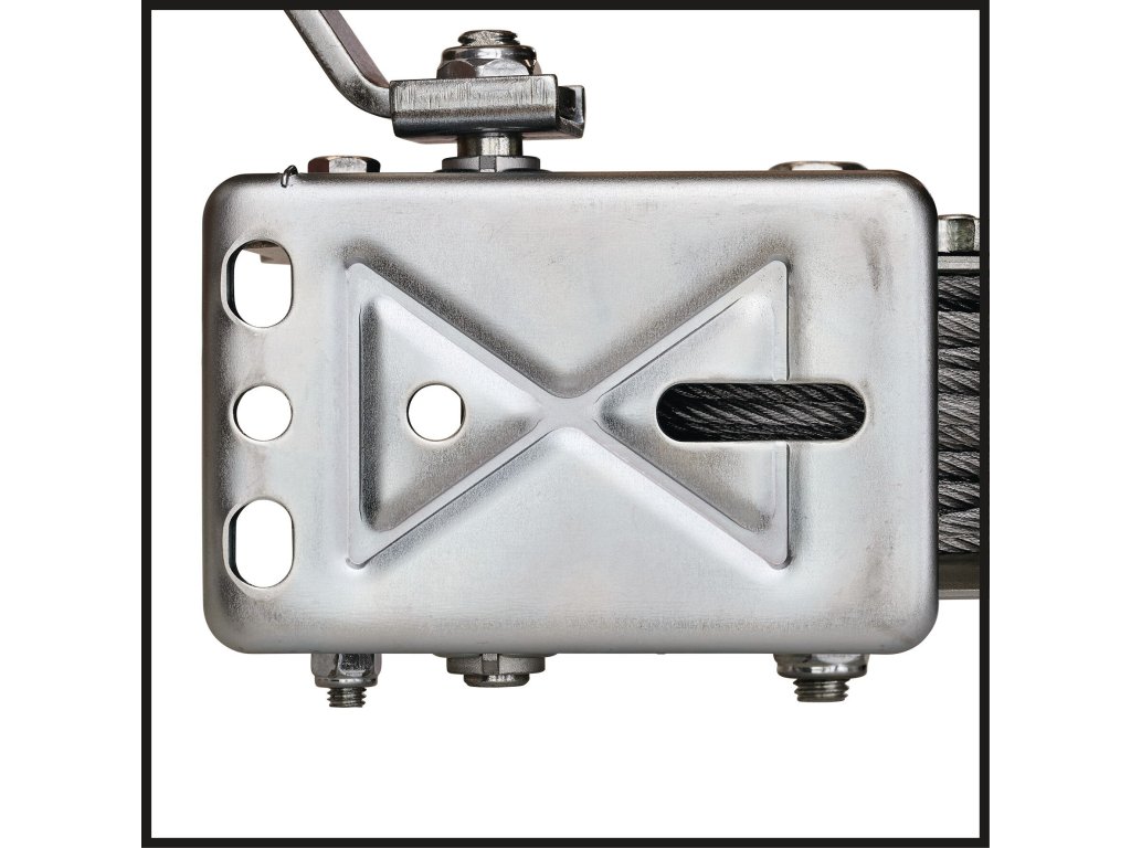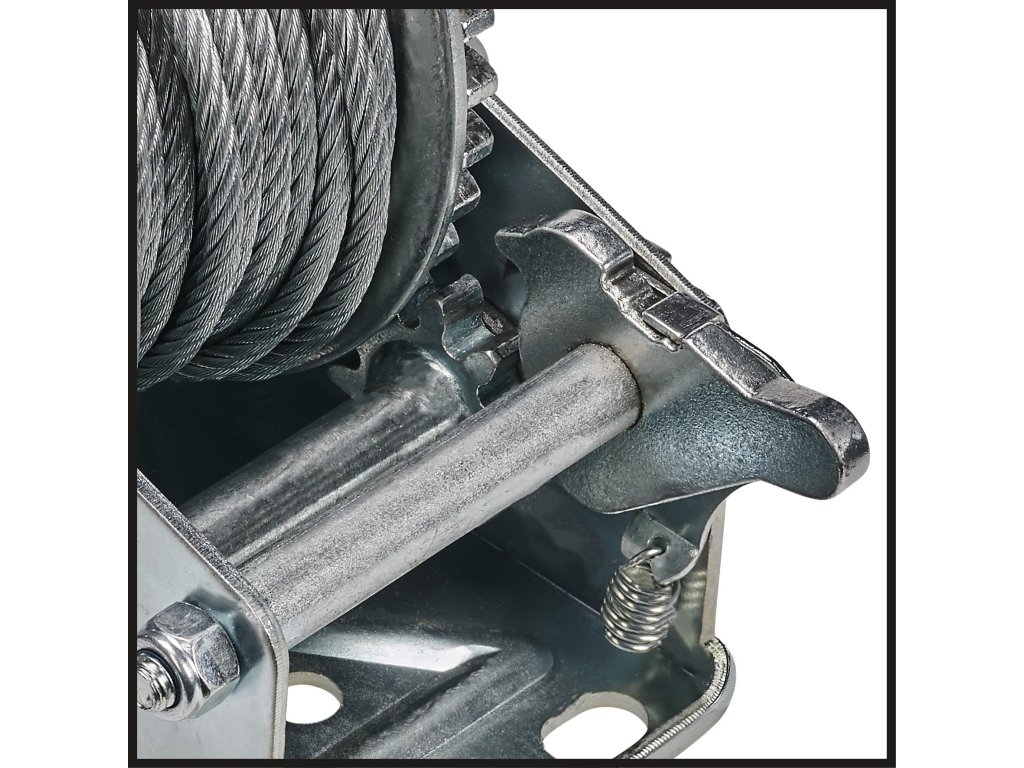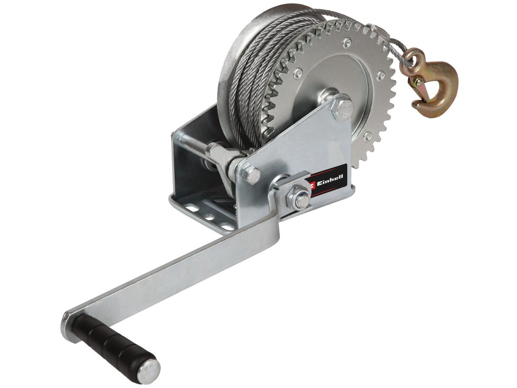 Ruční naviják Einhell TC-WI 800 má maximální nosnost 800 kilogramů. Ruční lanový naviják od Einhellu má 20 metrů dlouhé, nekroucené ocelové lano (Ø 4,8 mm) s bezpečnostním hákem a bezpečnostní klapkou. Bezpečnostní klapka zabraňuje nechtěnému vyvěšení nákladu. Díky zpětné zarážce lze lano i břemeno bezpečně zastavit. Ruční klika je opatřena měkkou rukojetí pro bezpečné, pevné držení a pohodlnou práci. Uchycení pomocí montážní desky s otvory je rychlé a snadné.