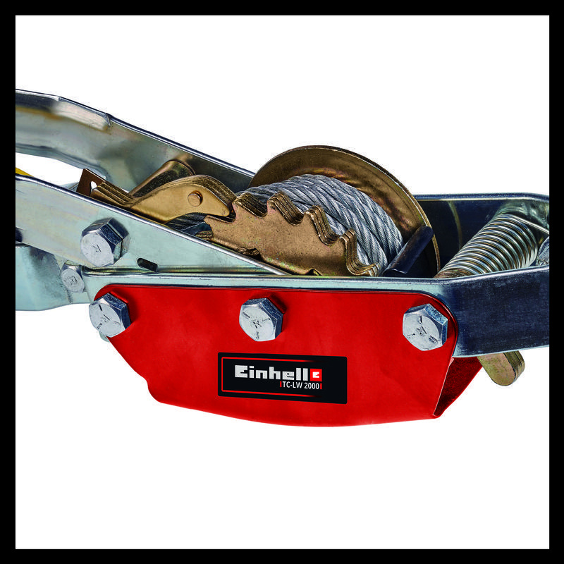 S ručním lanovým zvedákem Einhell TC-LW 2000 již není stěhování stavebních materiálů a těžkého zboží tak velkým oříškem. Lanko ruční páky je vhodné pro tahání a napínání břemen. S maximální tažnou silou 2 000 kg a maximální využitelnou vzdáleností 1,6 metru lze přemisťovat i masivní kamna na dřevo, kuchyňské spotřebiče a stroje - bez bolesti zad. Součástí dodávky je 3,3 metru dlouhé, nekroucené ocelové lano (Ø 6 mm) a kladka se zátěžovým hákem, která má bezpečnostní držák. Bezpečnostní lišta zabraňuje nechtěnému vyvěšení nákladu. Automatická brzda zajišťuje náklad v každé poloze. Aby se lano zcela nerozvinulo, je namontována bezpečnostní svorka. Tah lanka obsahuje tažnou pružinu, která umožňuje snadné odjištění západky pro odvíjení lanka. Ruční zvedák není vhodné pro zvedání a spouštění břemen.
