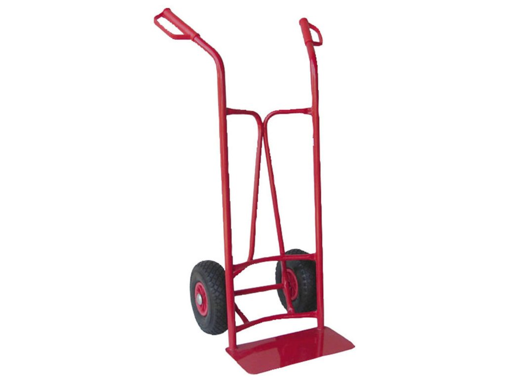 Dvoukolový ruční vozík, ideální pro manipulaci se zbožím v krabicích nebo bednách.