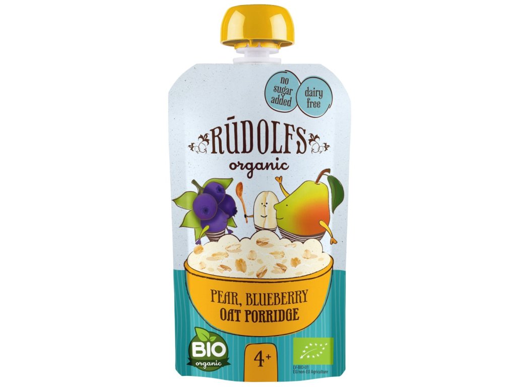Hruška* 51 %, vařené celozrnné ovesné vločky* 35 % (voda, celozrnné ovesné vločky*), borůvky* 8 %, hroznová šťáva*(z koncentrované šťávy). *-z ekologického zemědělství.