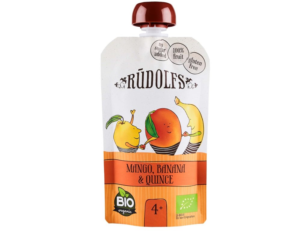 Složení:Mango*68%, banán*30%, kdoule*2%. *- ekologické zemědělství.