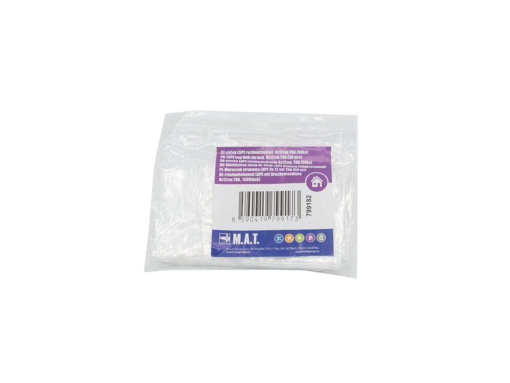 Sáček LDPE rychlouzavírací, 8 x 12 cm, TRA (50 ks).rozměry: 8 x 12 cm