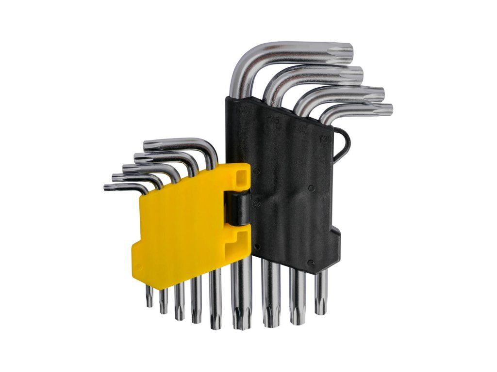 Sada torx klíčů, klíče jsou vyrobeny z vysoce kvalitní oceli S2, která se vyznačuje vysokou pevností a pružností.