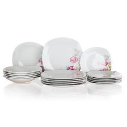 18dílná talířová sada square DOLORES je vyrobena z porcelánu.