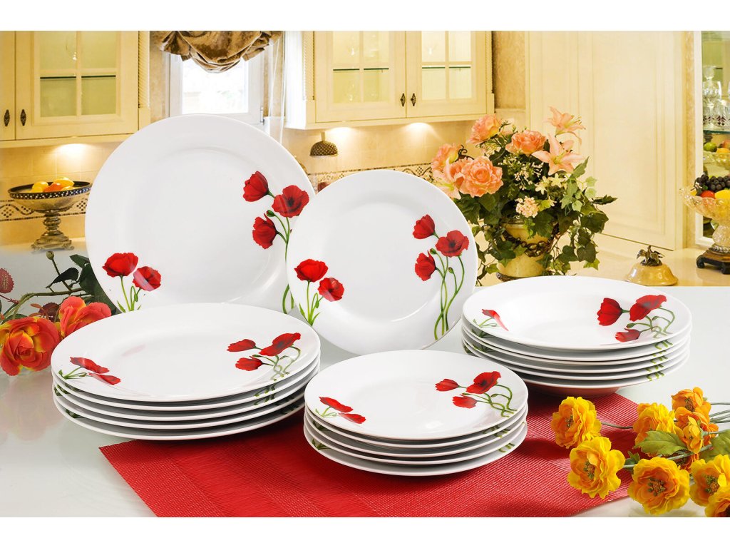 18dílná talířová sada POPPY s motivem vlčích máků, je vyrobena z porcelánu.