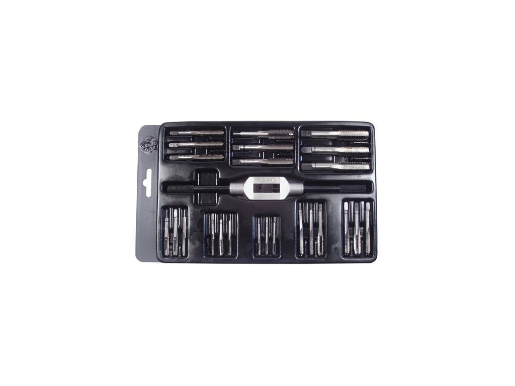 sada obsahuje: metrický závit závitník: M 3; 4; 5; 6; 7; 8; 10; 12, vratidlo ruční nastavitelné: 2,5-9 mm