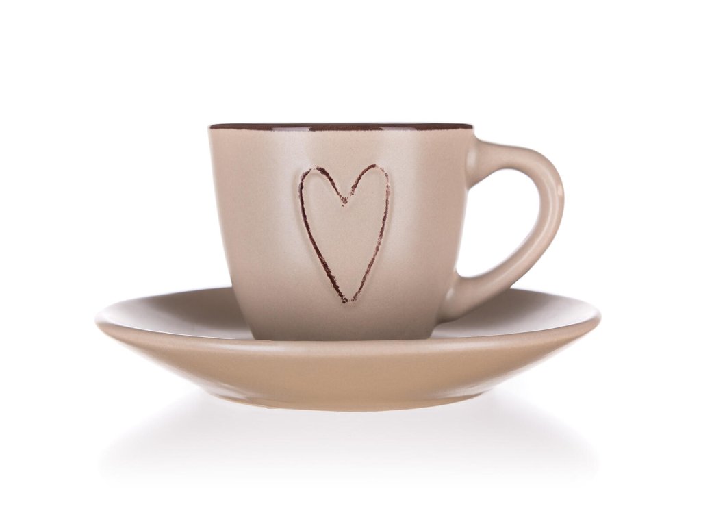 šálek + podšálek 80ml HEART BÉŽ keramický