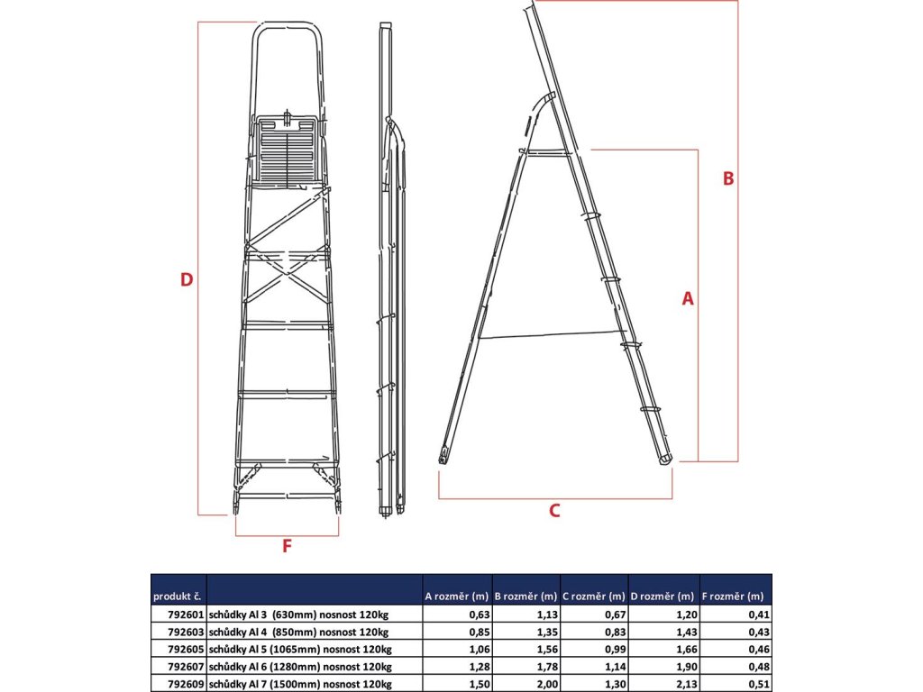 schůdky Al 6 (1280mm) nosnost 120kg