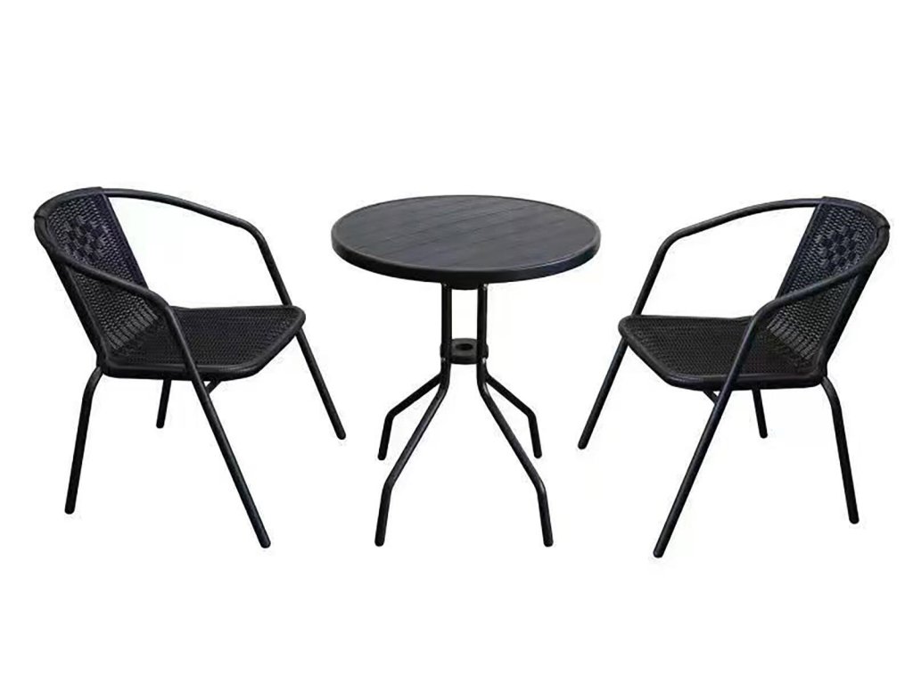 set zahradní ratan PH/kov stůl + 2 židle ČER