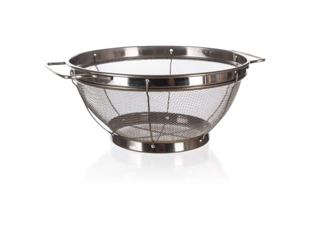 Nerezové síto s podstavcem a uchy je výborným a praktickým pomocníkem v kuchyni při oplachování ovoce, zeleniny nebo pasírování těstovin.