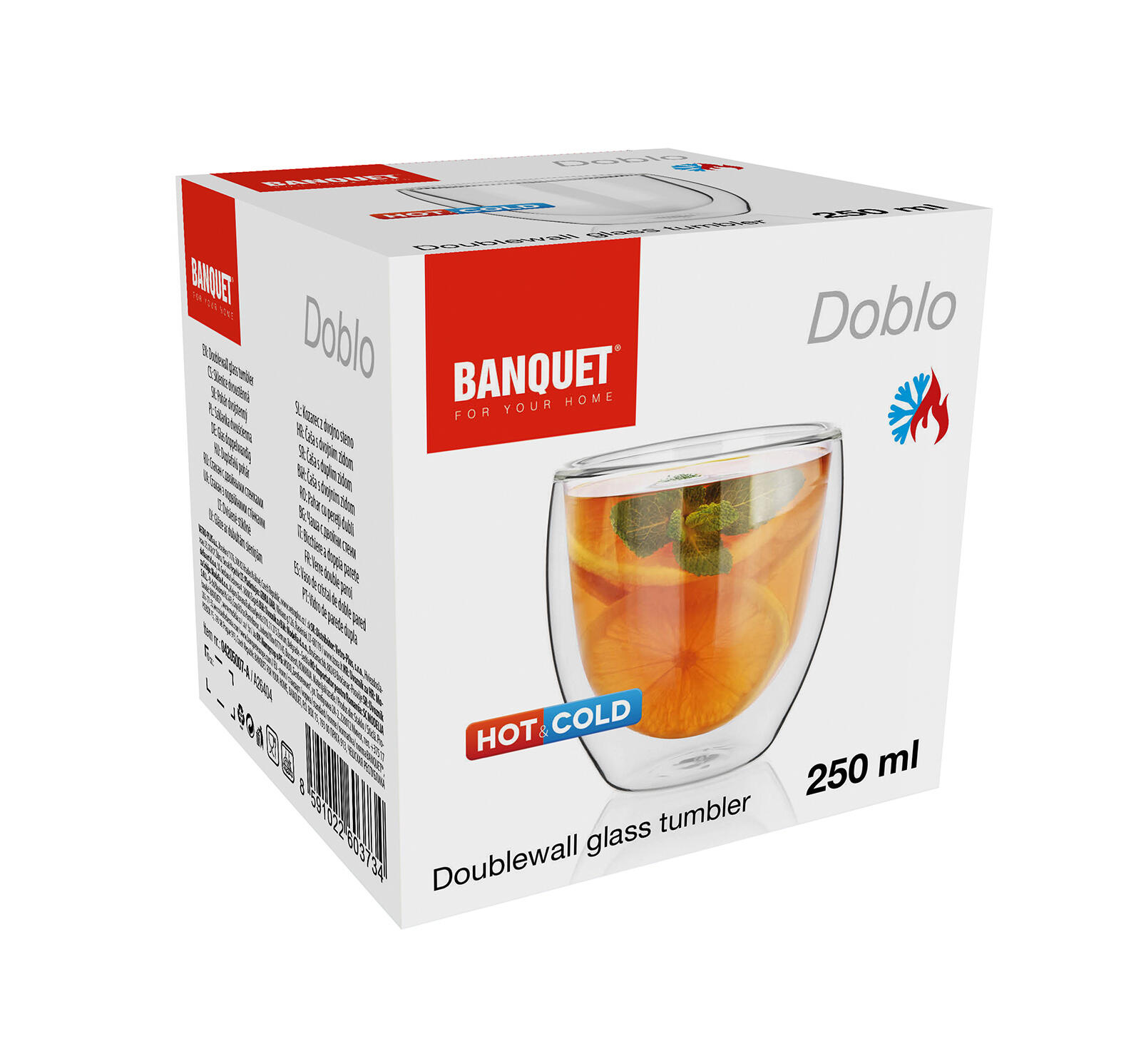Dvoustěnná sklenice DOBLO je vhodná pro podávání studených i horkých nápojů.