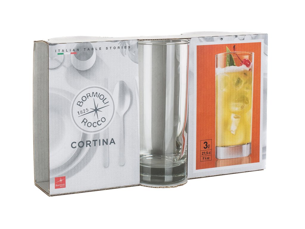 Sklenice CORTINA long jsou čiré univerzální sklenice o objemu 275 ml.