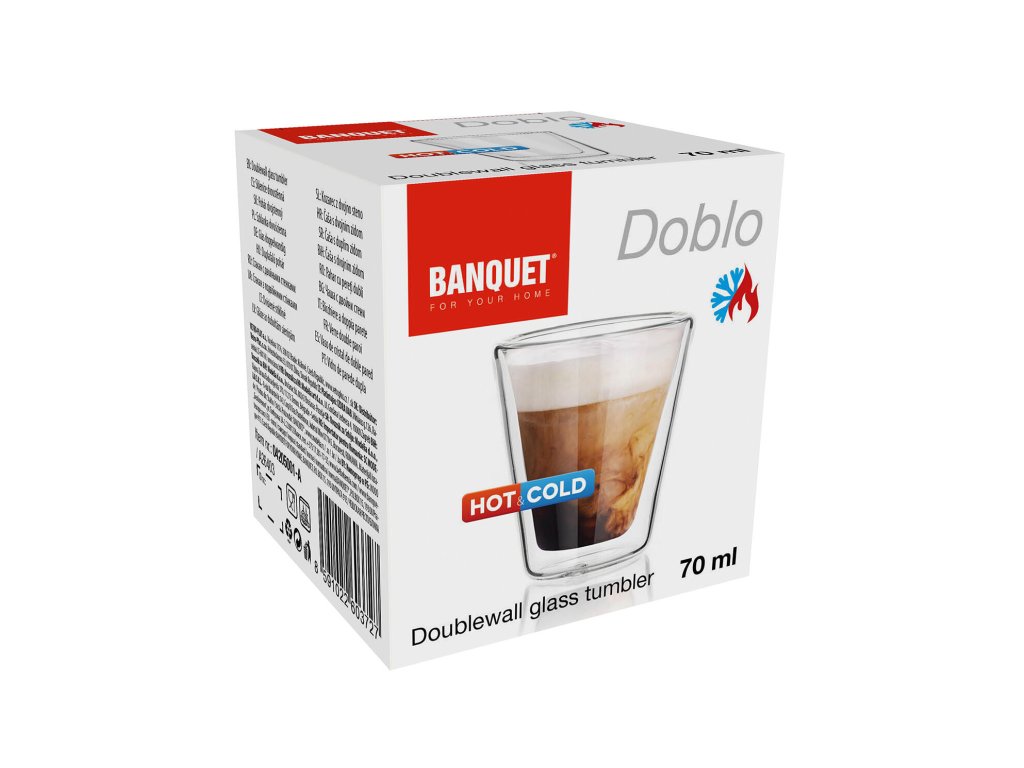 Dvoustěnná sklenice DOBLO je vhodná pro podávání studených i horkých nápojů.