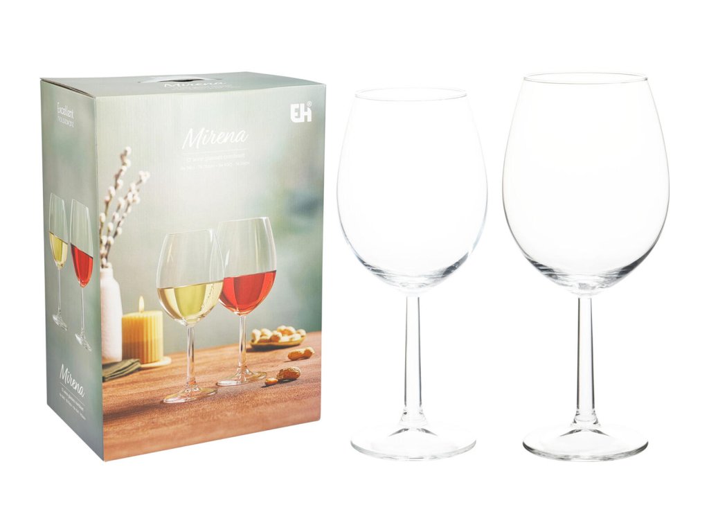 Sklenice na víno (6 + 6 ks) 6 x 430 ml, 6 x 580 ml.