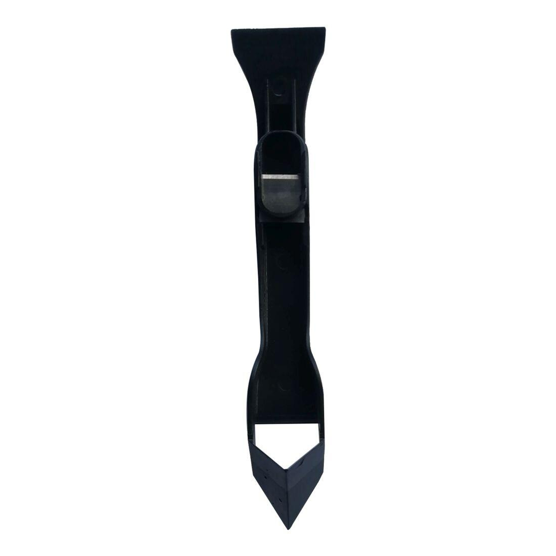 Díky ostří lehce odstraníte zbytky staré spárovací hmoty. Po očištění a přípravě povrchu můžete pomocí plastové špachtle na druhém konci škrabky nanést a upravit novou hmotu.