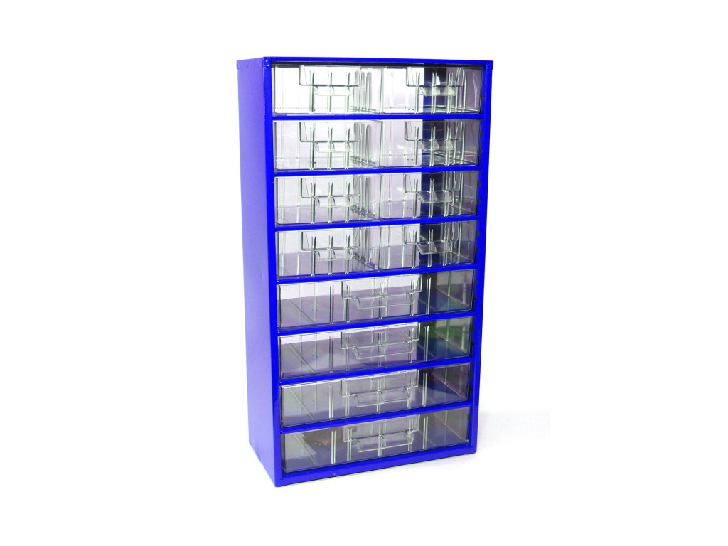 skříňka 2 velikosti 8 stř.,4 vel.zásuvky 30,5x55x15,5cm kov.MO