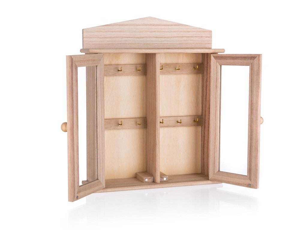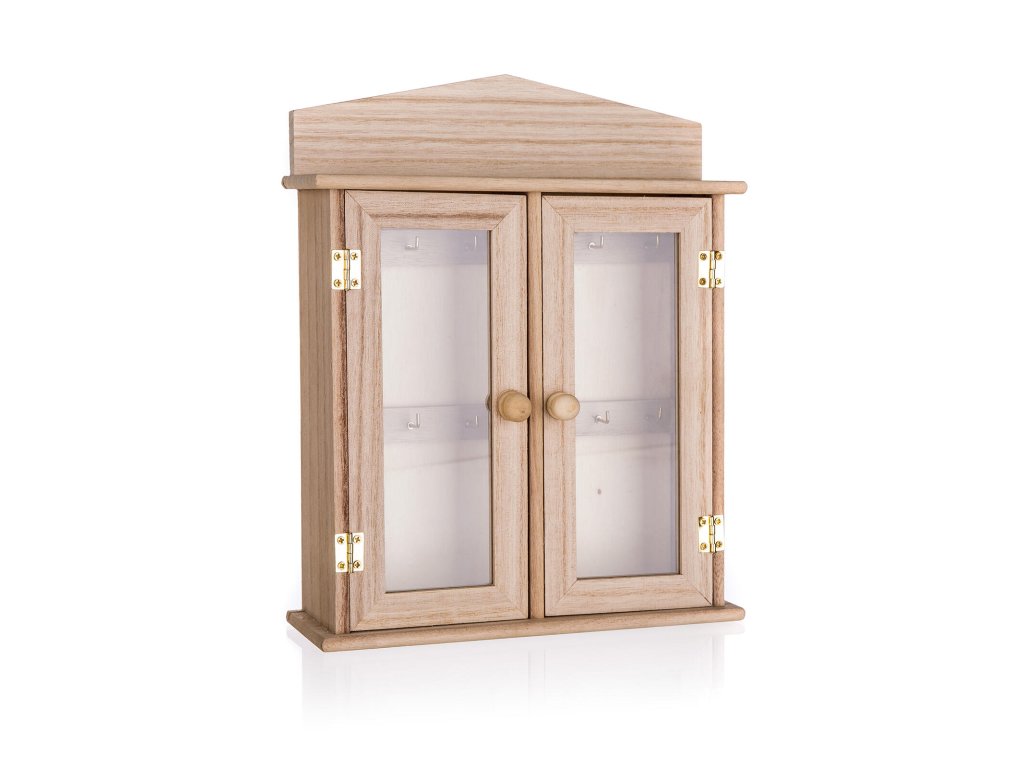 Dřevěná schránka na klíče se skleněnými dvířky je vhodná pro zavěšení klíčů,