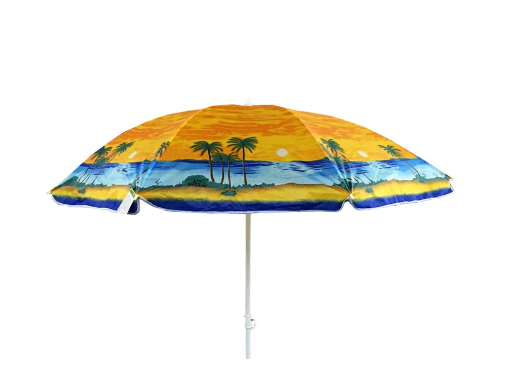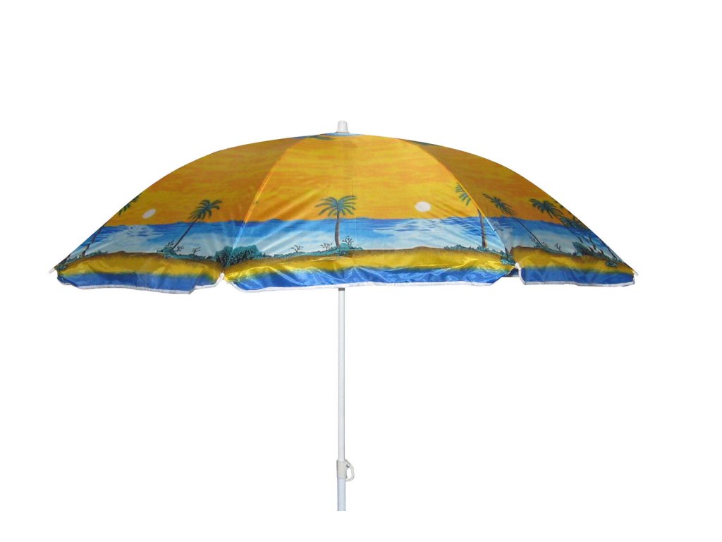Slunečník je vysoký 190 cm, průměr tyče 2,2 cm a je dodáván v mixu barev a dekorů.