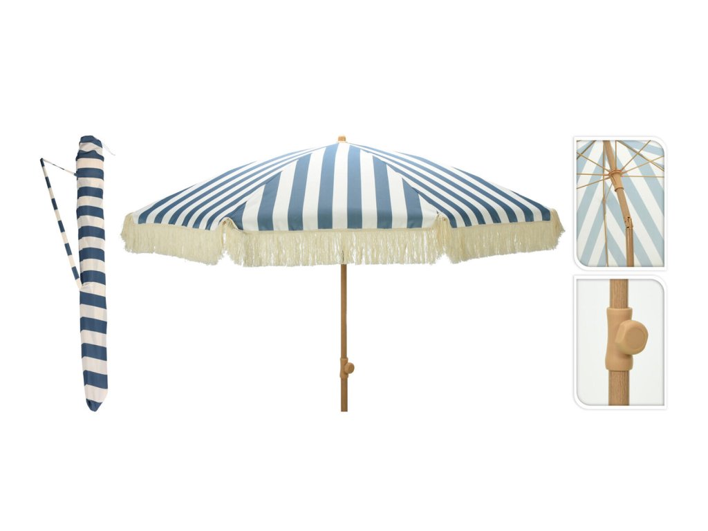 slunečník 200/183cm se střapcem PP/ocel MO/BÍ PRUHY