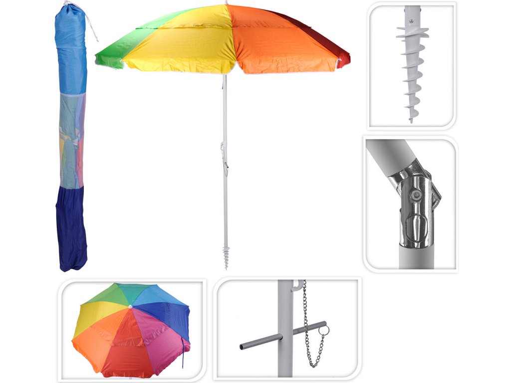 slunečník 220cm, s kloubem a vrutem, duhové barvy
