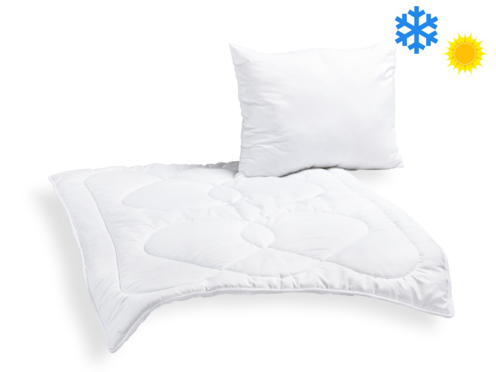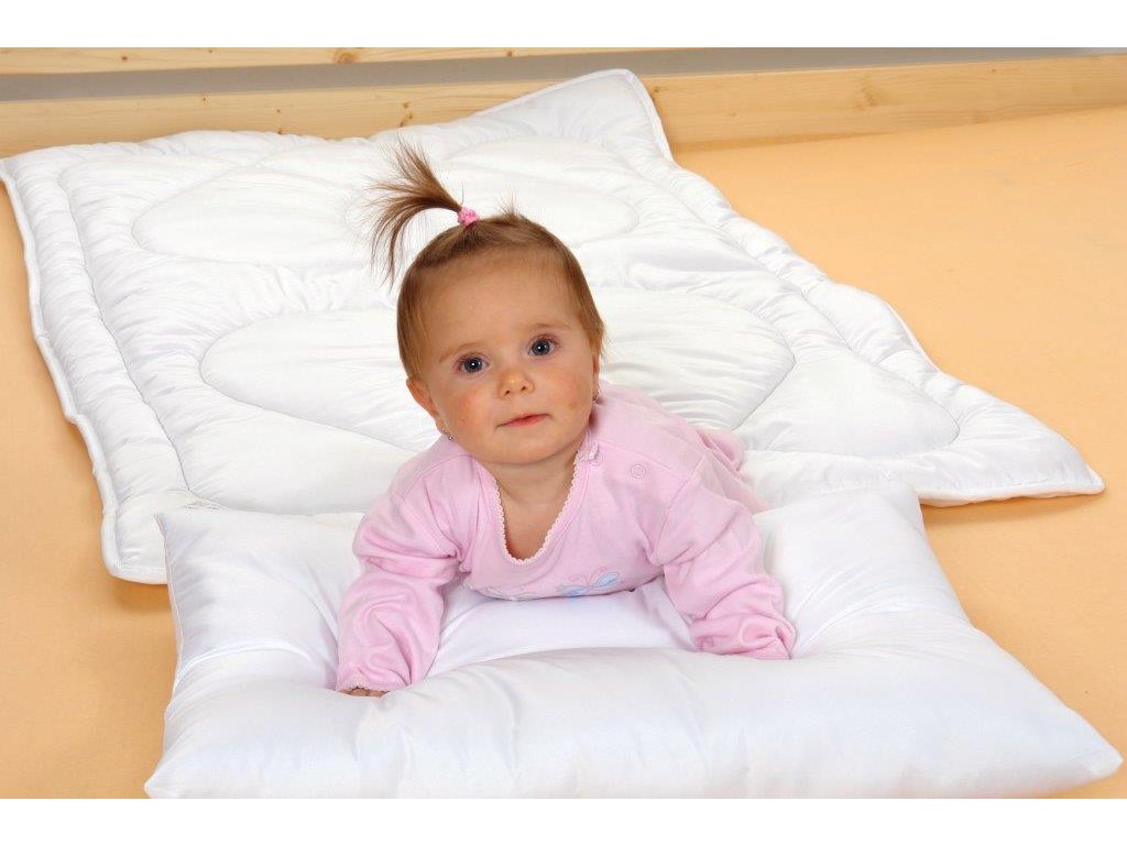 Dětská souprava Optimal obsahuje středně teplou celoroční přikrývku o gramáži 300g/m2 ( 90x135cm ) a polštářek neprošitý s výplní dutého vlákna ( 45x60cm ). Přikrývka i polštář obsahují plně protialergické duté vlákno, použité materiály pro výrobu jsou vhodné pro děti do tří let.