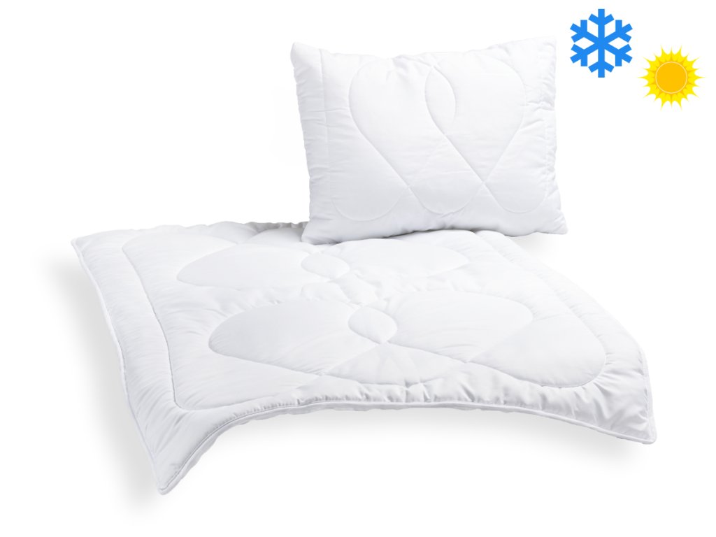 Dětská souprava Luxus plus obsahuje středně teplou celoroční přikrývku o gramáži 300g/m2 ( 90x135cm ) a polštářek prošitý se zipem s výplní kuličkového dutého vlákna ( 45x60cm ). Přikrývka i polštář obsahují plně protialergické duté vlákno, použité materiály pro výrobu jsou vhodné pro děti do tří let.