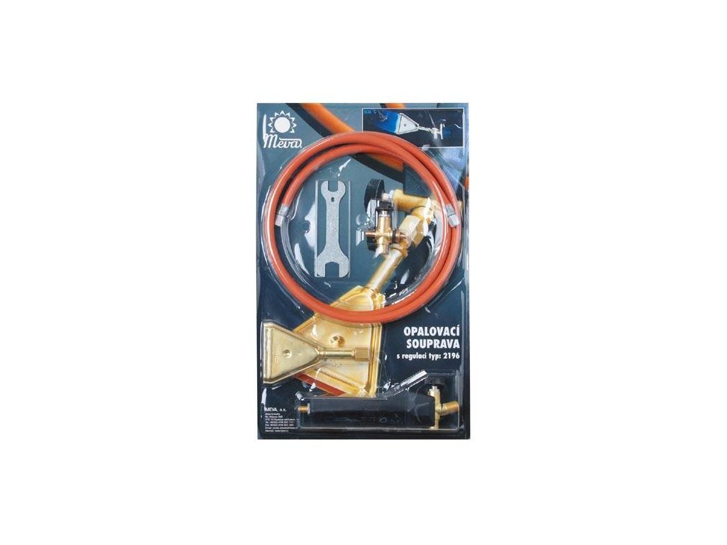 Opalovací souprava 2196 na propan-butan s plochým hořákem je určena pro kutily k řemeslným pracem menšího rozsahu, opalování starých nátěrů a různé druhy ohřevu a je připojena pomocí ventilu a hadice k propan-butanové láhvi.