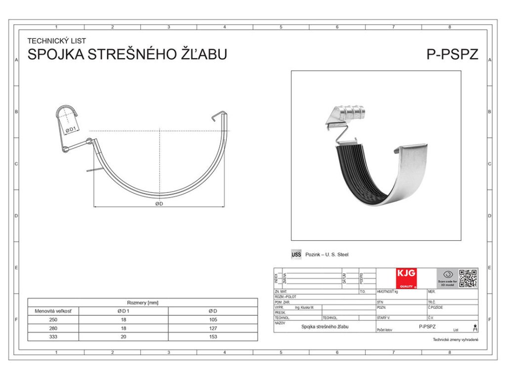 spojka žlabová 330 m Zn