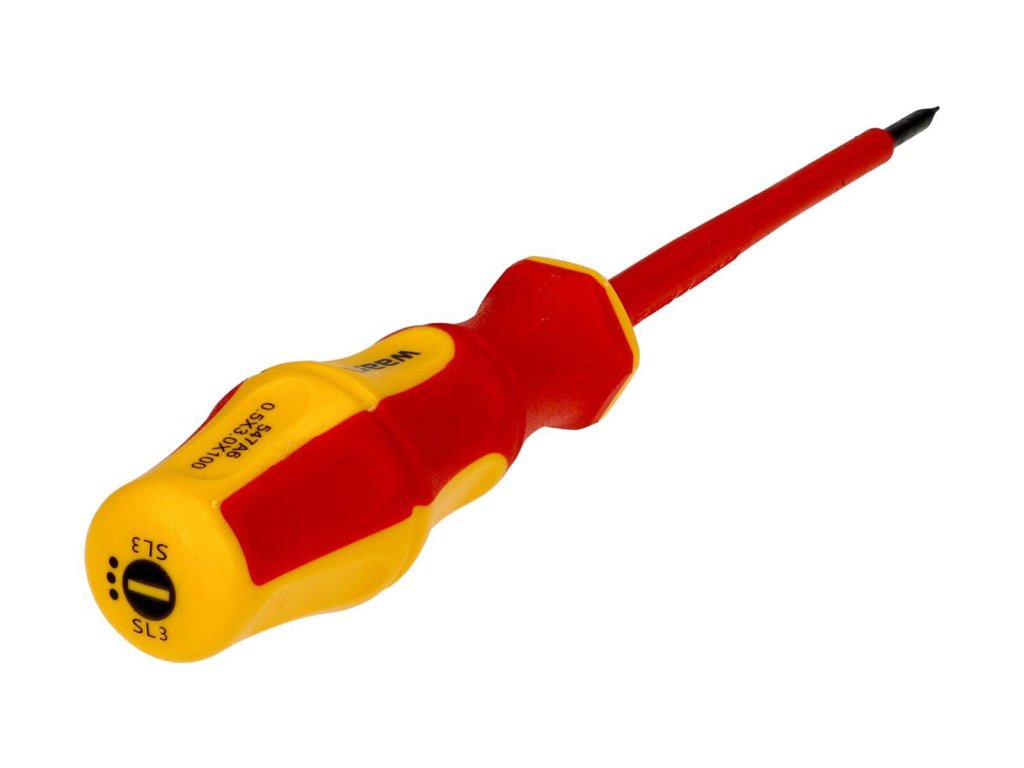 Tento plochý elektrotechnický šroubovák je nástroj s plochou čepelí určený pro práci s elektrickými součástmi.