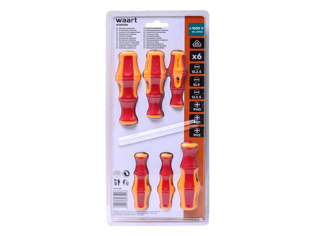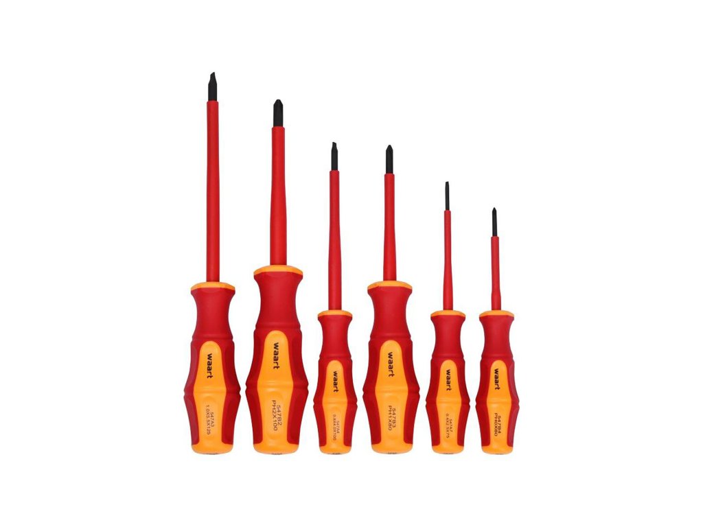 Šestidílná sada izolovaných šroubováků má rukojeť s certifikací VDE, která zajišťuje izolaci až do 1000 V.