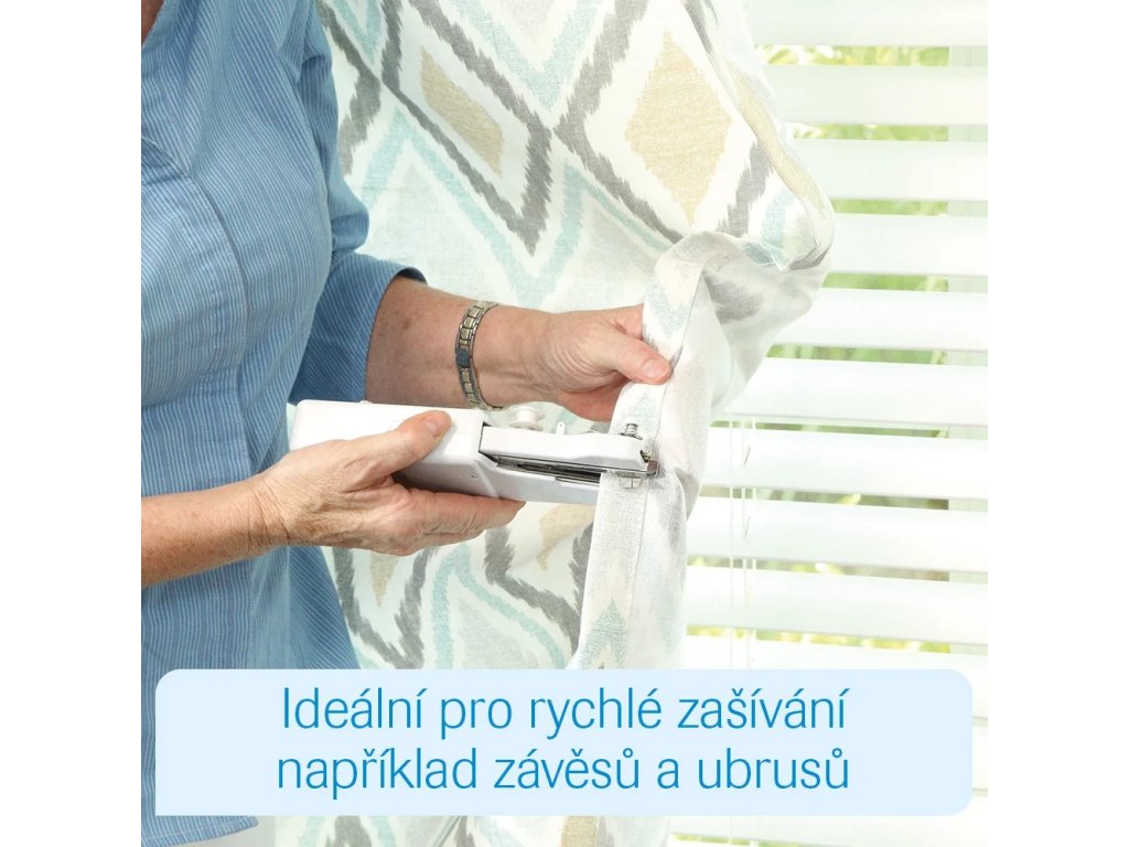 Rychlé, snadné a nekomplikované šití bez předpřípravy Extrémně lehký, váží jenom 300 gramů a perfektně se drží Vhodný na šití a zašívání různých materiálů Ideální na rychlou práci na ubrusech, závěsech, ložním prádle nebo na oblečení Během několika sekund připraven k použití