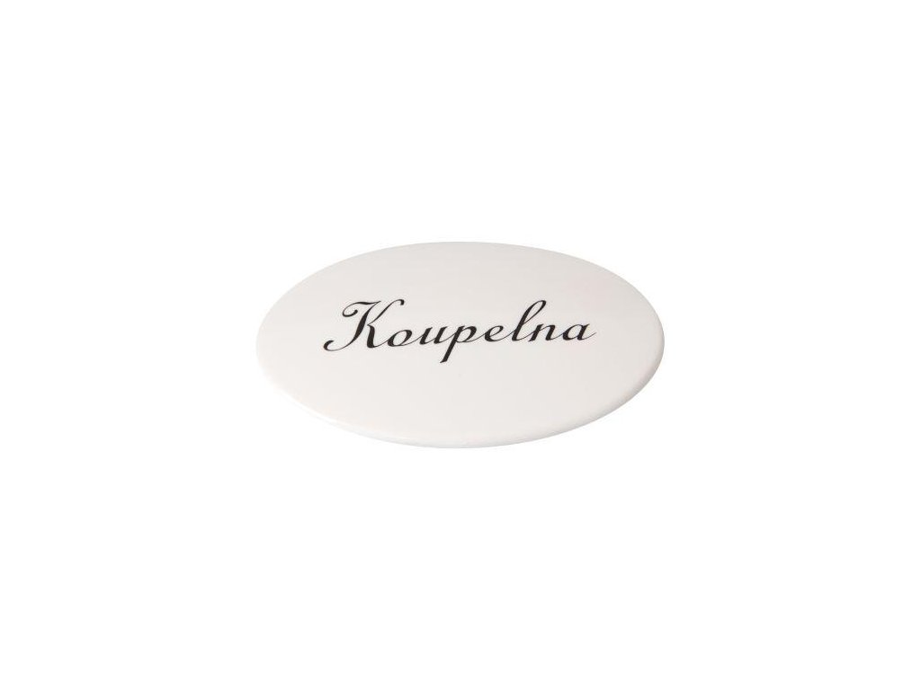 Dveřní štítek s popisem KOUPELNA slouží k označení dveří bytového jádra.