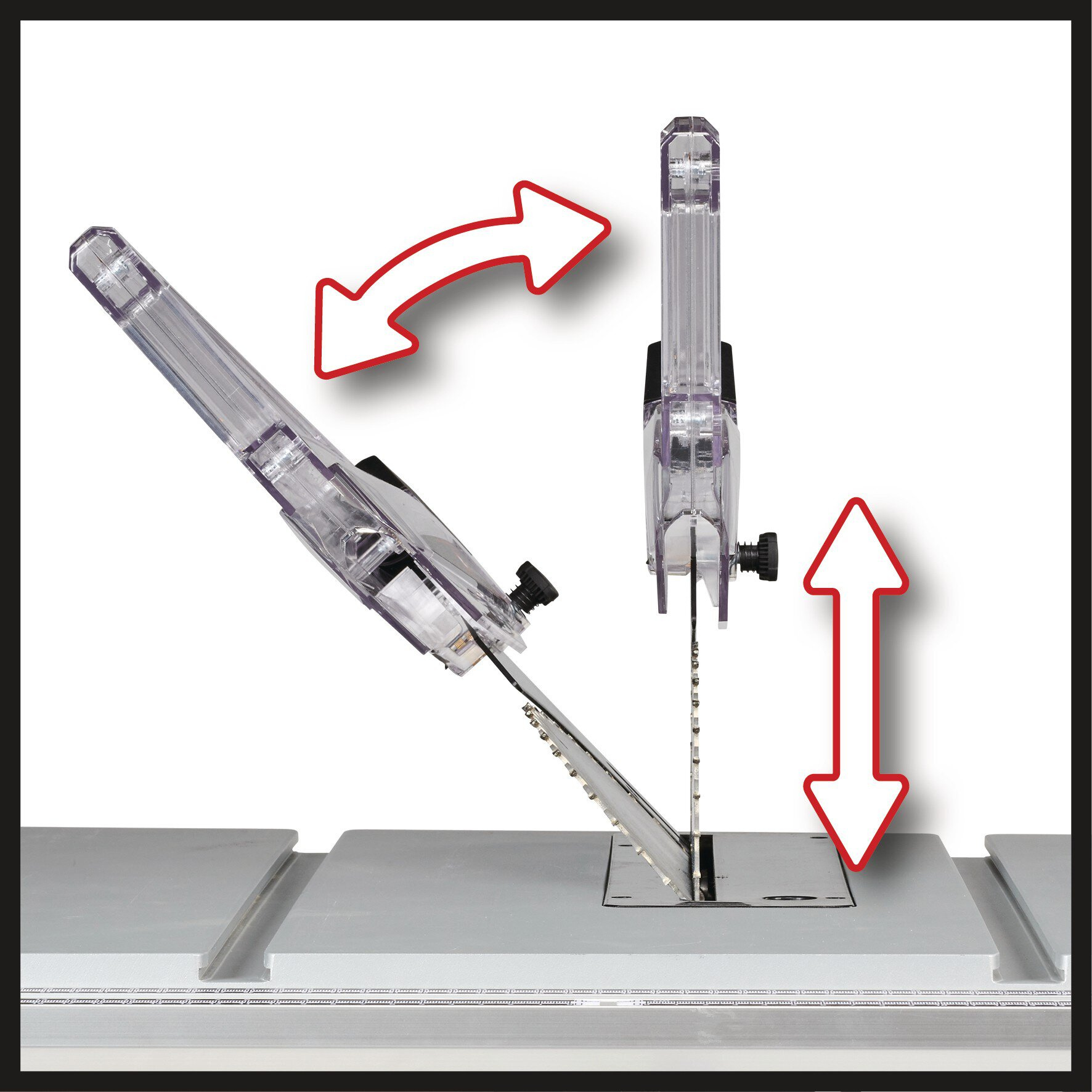 Stolní okružní pila Einhell TE-TS 254 T zaručeuje čisté řezy během okamžiku v domácnosti, dílně a i v garáži.Ať už chcete řezat překližku, panely do tvaru nebo potřebujete zkrátit a ořezat trámy a prkna: S touto stolní kotoučovou pilou s otočným kotoučem (až 45°) a snadno nastavitelnou výškou (max. řezání při 45°: 63 mm/max. výška sečení při 90°: 89 mm) můžete přijmout jakoukoli výzvu. Hladký start díky funkci softstart minimalizuje namáhání motoru. Hlavní stůl je vyroben z hliníku, přesný povrch je základ pro snadné a přesné řezání. Šířku stolu lze rychle upravit pro obrobky až do 660 mm. Paralelní doraz s excentrickým upínáním a úhlový doraz (+/-60°). Pila je opatřena přípojkou pro odsávání třísek (Ø36mm), což zajišťuje vždy čisté pracoviště. Snadnou přepravu slibují takové vlastnosti, jako je kompaktní design, integrované rukojeti a skutečnost, že ke spuštění integrované štípačky není potřeba žádné nářadí. Na krytu jsou umístěny držáky pro příslušenství a kabely.