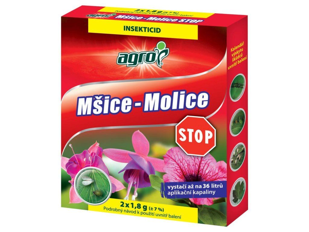 STOP mšice - molice je velmi efektivní insekticid působící na všechna vývojová stadia škůdců.