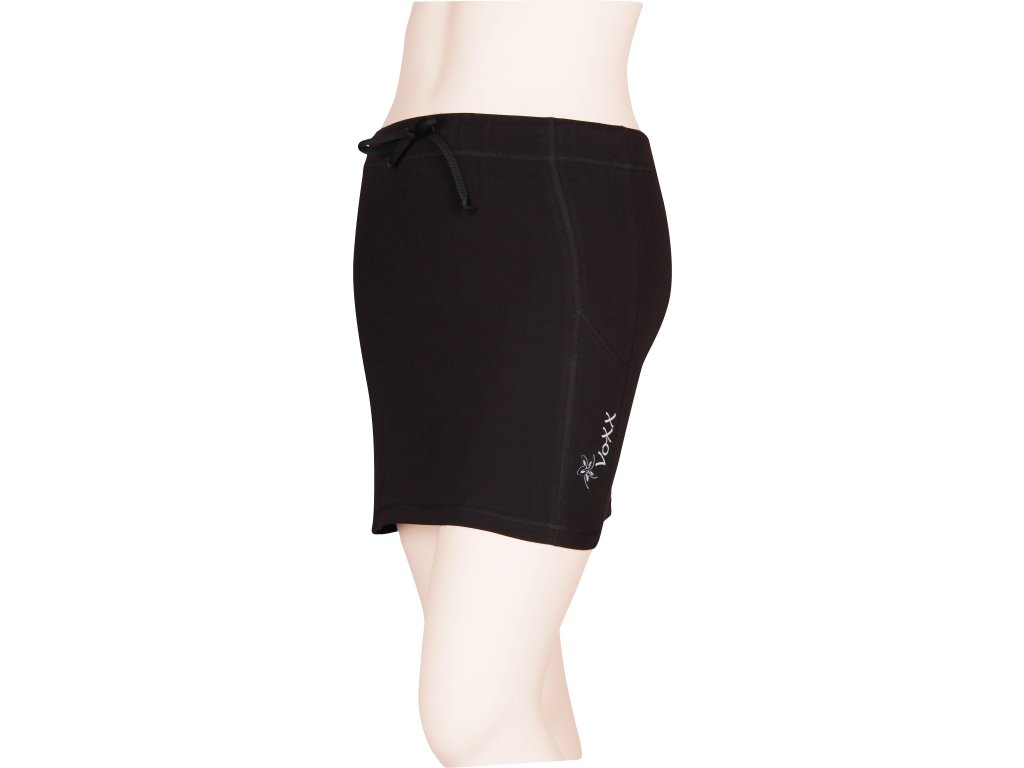 Dámská jednobarevná sukně s elastanem na fitness aktivity i běžné nošení, pružný bavlněný materiál podporuje přirozený pohyb, svislé prošití, ozdobná aplikace VoXX®, v pase navíc se stahovací šňůrkou, univerzální černá barva se snadno kombinuje s dalším oblíbeným oblečením.
