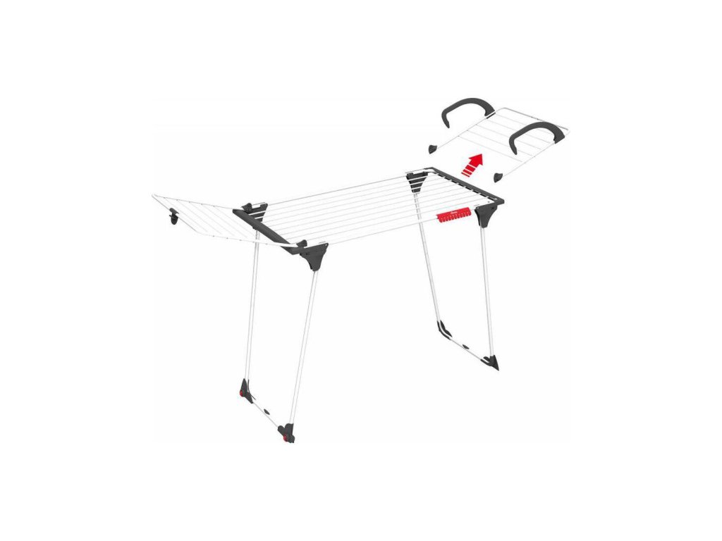 Rozkládací sušák na prádlo 18 m PREMIUM 2V1 s kolečky má dvojí použití,lze použít jako celek k sušení každodenního prádla, nebo můžete použít pouze jeho oddělitelné křídlo.