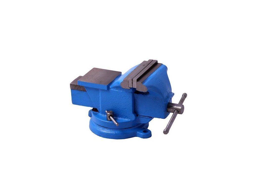 Masivní svěrák s kovadlinkou z litiny, tvrzené čelisti, otáčení svěráku pomocí otočného talíře, tělo a pohyblivé rameno odlité každé z jednoho kusu zaručuje, velkou odolnost a pevnost.