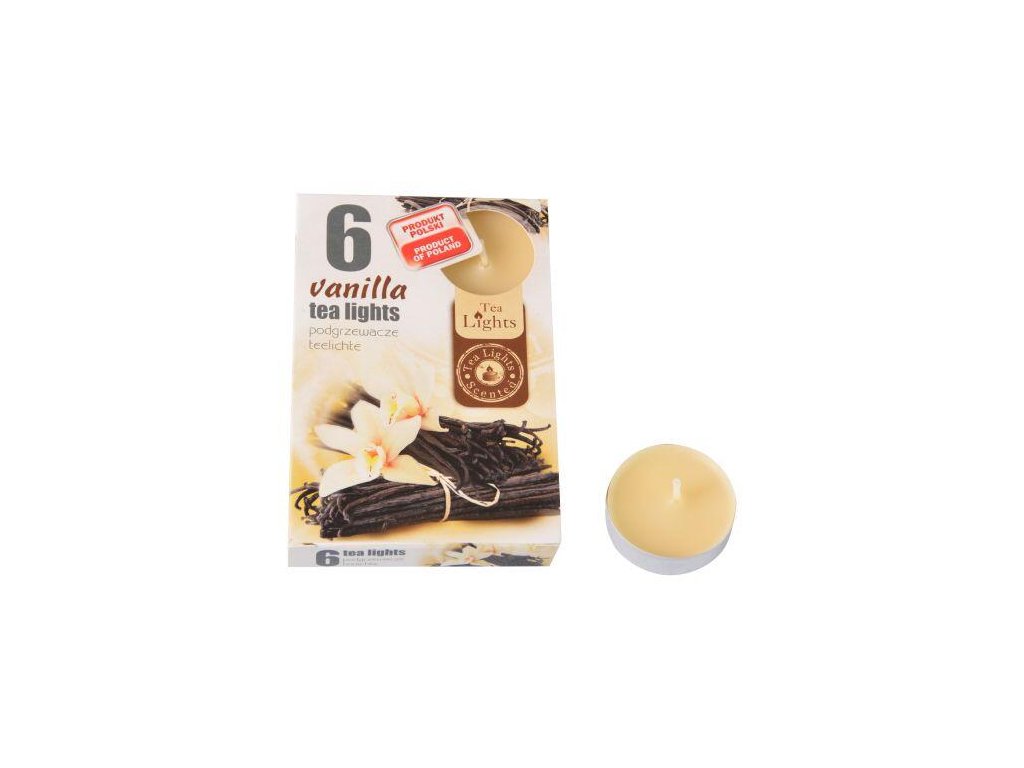svíčka čajová vonná VANILKA A POMERANČ (6ks) (hoří 6x3-4hod)