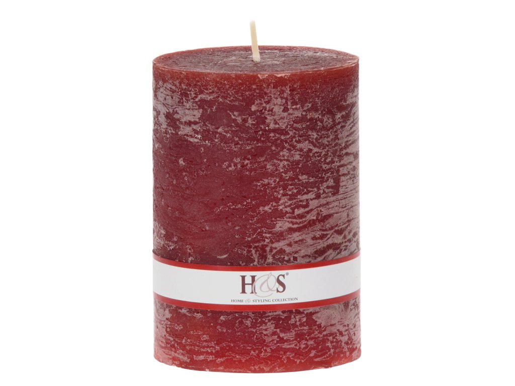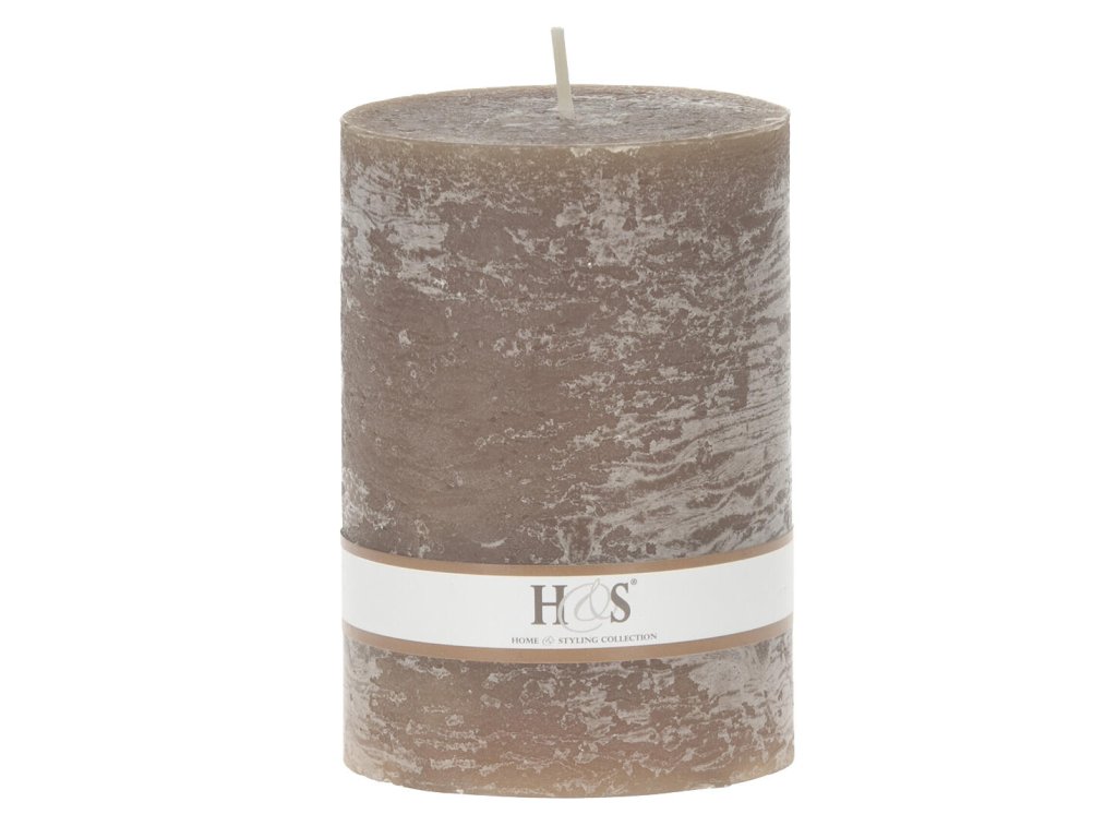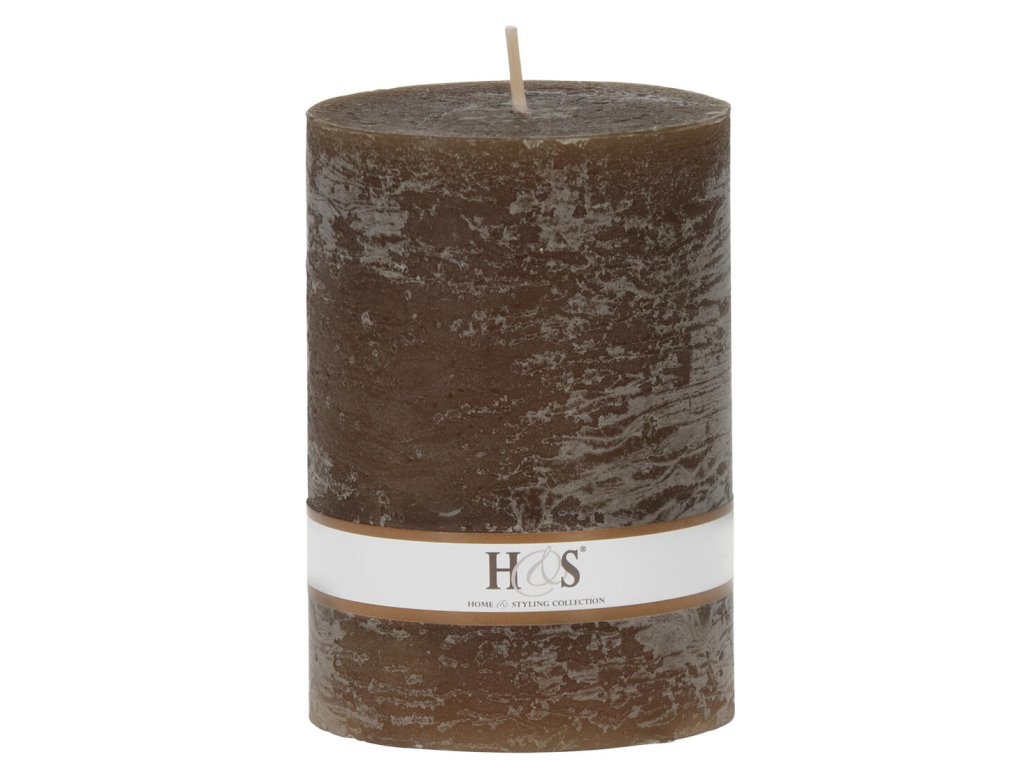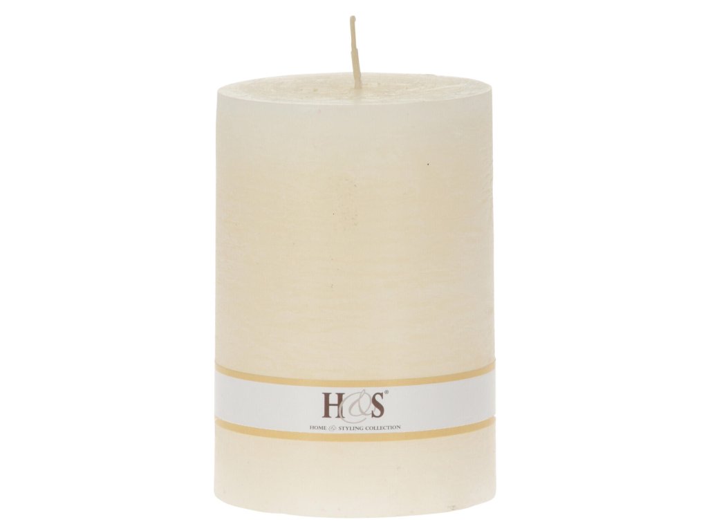Jednobarevná svíčka ve tvaru válce s rustikálním povrchem.