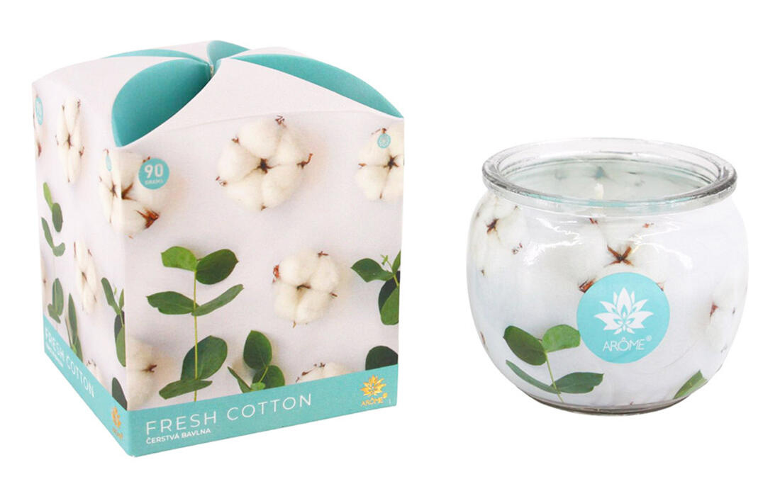 ARÔME Svíčka 90 g, ve skle a flower boxu, Fresh Cotton